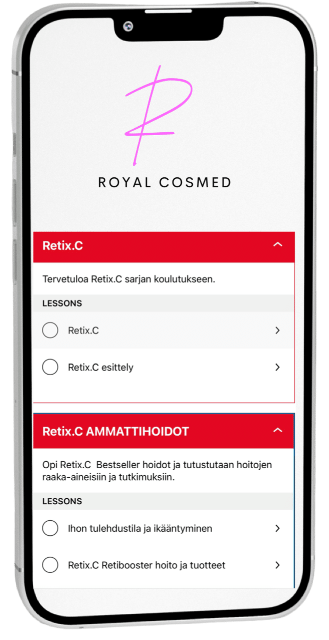 Royal Cosmed Group toimii tukena terveydenhuollon ja kauneudenhoidon ammattilaisille. Kokemusta on kertynyt jo 20 vuotta. Tarjolla on laadukkaita tuotteita ja koulutuksia. Näillä takaat hoidoille parhaat tulokset. Kun rekisteröidyt, kerrothan oppilaitoksen tai yrityksen nimen. Jos olet uusi alalla, mainitse se.